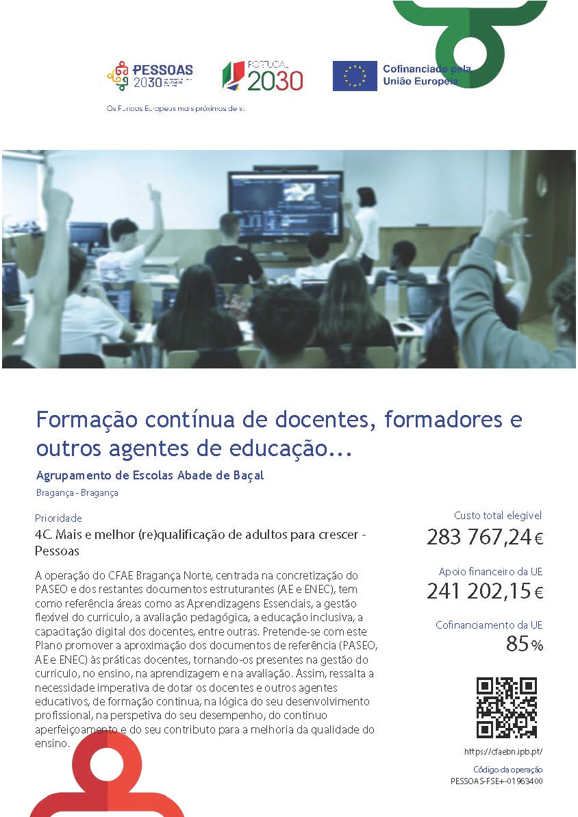 Vimos dar conhecimento da 4.ª edição da iniciativa “CFAEBN no Agrupamento”. À semelhança do ano letivo anterior, no âmbito desta iniciativa, a equipa do CFAEBN – diretor (António Luís Ramos), assessor (Manuel Cordeiro) e assistente técnica (Ana Rita Silva) - deslocar-se-á a todos os agrupamentos associados.